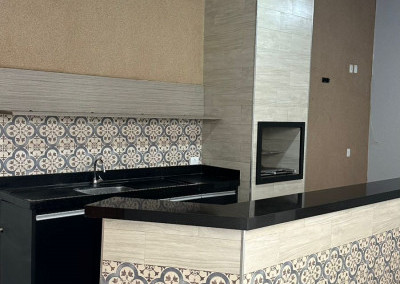 - Cozinha gourmet com armários e cooktop