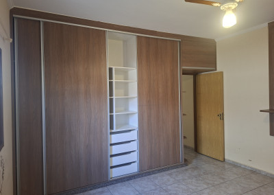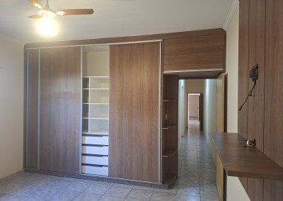 - 03 dormitórios, sendo 01 suíte com guarda roupa embutido e painel p/ tv